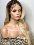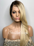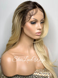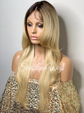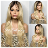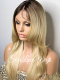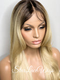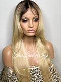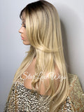 Long Blonde Straight Synthetic Lace Front Wig Dark Roots Layers - Amy