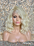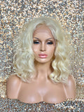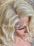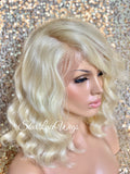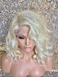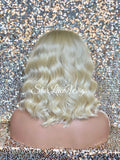 Short Wavy Platinum Blonde Lace Front Bob Wig (6x13) Parting Space - Blanca