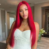 Long Straight Red Human Hair Blend Lace Front Wig - Cheri