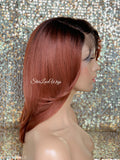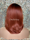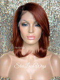 Lace Front Wig Bob Red Dark Roots Side Part Straight Bangs - Ruby