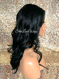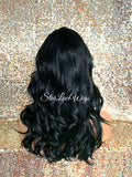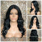 • Long Loose Curly Wig Black Brown Middle Part Synthetic - Lisa