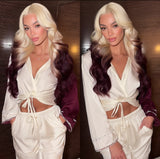 Long Blonde Brown Ombre Body Wave Human Hair Blend HD Lace Front Wig - Chance
