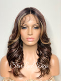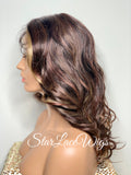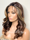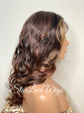 Lace Front Wig Long Curly Layers Brown Auburn Blonde Highlights - Ginger