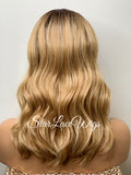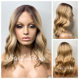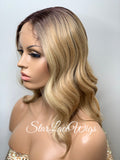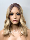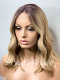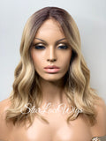 Lace Front Wig Bob Wavy Blonde Dark Roots Synthetic - Shelly