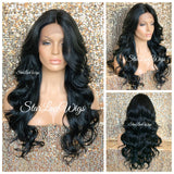 Lace Front Wig Long Synthetic Curly Layers Black Brown Middle Part - August