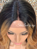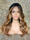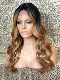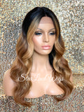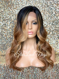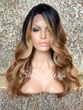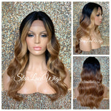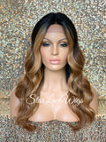 Lace Front Wig Long Synthetic Loose Waves 27/30 Dark Roots Middle Part - Irene