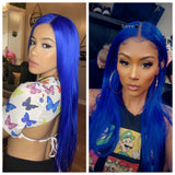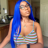 • Long Blue Straight Lace Front Wig Center Part - Stella