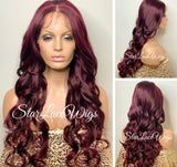 Long Burgundy Red Lace Front Wig (6x13) Free Part - Sharon