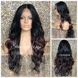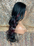 Long Loose Curls Lace Front Wig (6x13) Parting Space Black Burgundy - Dior