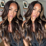 Long Loose Waves Lace Front Wig (13x6) Brown with Highlights - Aubrey