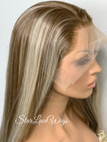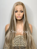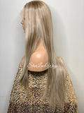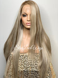 Long Blonde Straight Lace Front Wig (13x4) Ash Platinum Blonde Highlights - Delilah