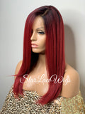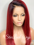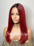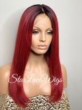 Long Straight Red Black Roots Lace Front Wig (6x13) Parting Space - Anita