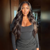 Long Wavy Black Blonde Highlights HD Lace Front Wig Center Part - Selene