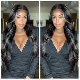 • Long Wavy Black Blonde Highlights HD Lace Front Wig Center Part - Selene