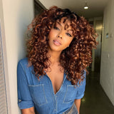 Curly Dark Ginger Bob Wig Bangs - Aurelia