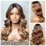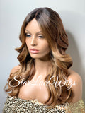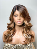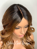 Long Loose Curly Wig Honey Blonde Strawberry Blonde Dark Roots Middle Part Synthetic - Selina