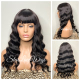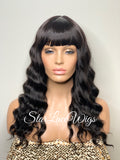 • Long Wavy Black Brown Wig With Chinese Bangs - Asia
