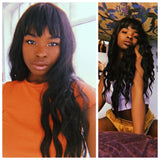 Long Wavy Black Wig With Chinese Bangs - Fara