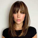 • Short Straight Bob Wig with Bangs Brown Highlights - Karmen