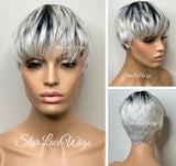 Short Straight White Platinum Blonde Pixie Wig Bangs - Jean