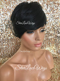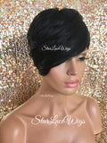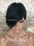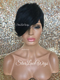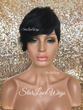 Short Synthetic Wig Black Pixie Bangs - Aubree