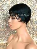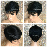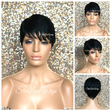 Short Synthetic Wig Black Pixie Bangs - Stacy