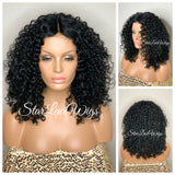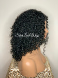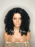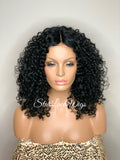 Synthetic Curly Full Wig Black Middle Part Shoulder Length - Monica