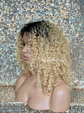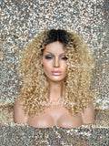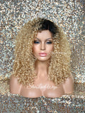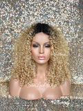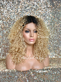 Synthetic Curly Full Wig Blonde Dark Roots Shoulder Length - Dina