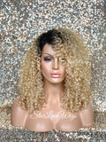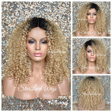 • Synthetic Curly Full Wig Blonde Dark Roots Shoulder Length - Dina