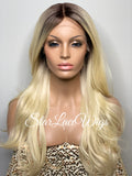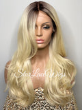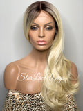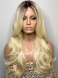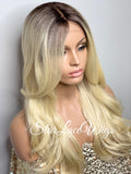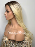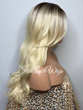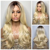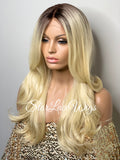 Long Blonde Curly Synthetic Lace Front Wig Dark Roots - Nicole