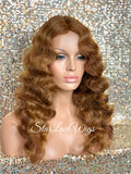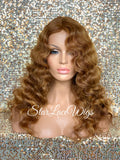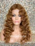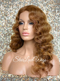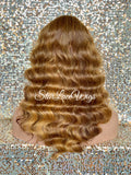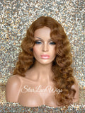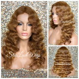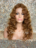 Long Light Golden Brown Body Wave Wig Middle Part Synthetic - DeeDee