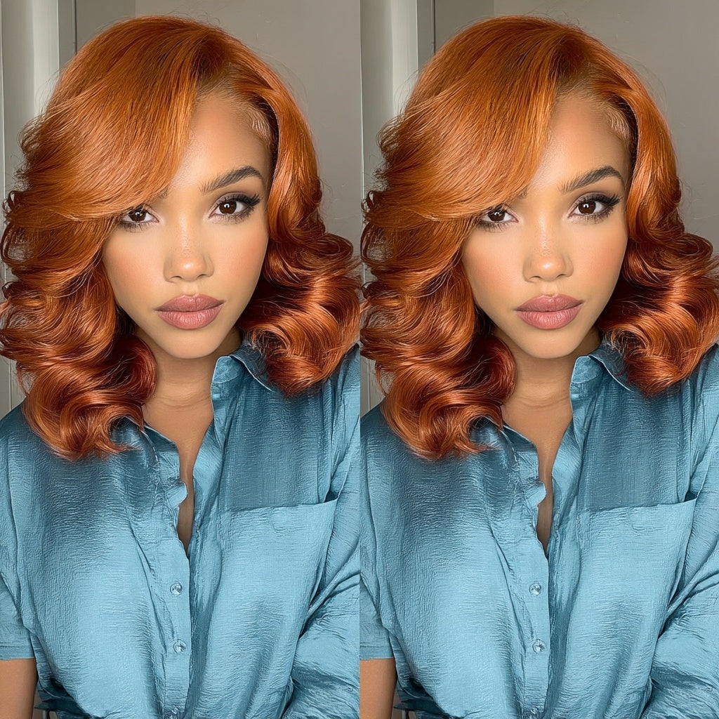 • Ginger Curly HD Lace Front Wig (13x6) Curly Free Part Bangs - Harlow