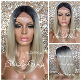 Lace Front Wig Human Hair Blend Platinum Blonde Dark Root Straight Bob - Dani