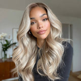 Long Blonde Human Hair Blend HD Lace Front Wig (13x4) Body Wave - Amanda