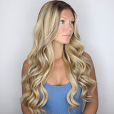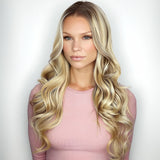 • Long Golden Blonde Human Hair Blend HD Lace Front Wig (13x4) - Ashley