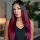 Long Red Straight Dark Roots HD Lace Front Wig Human Hair Blend - Ruby