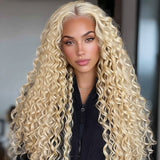 Long Wavy Human Hair Blend HD Lace Front Wig (13x6) Blonde #613 - Gloria