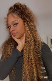 • Honey Blonde Human Hair Lace Front Wig 4x4 Deep Wave #4 & #27 - Dakota