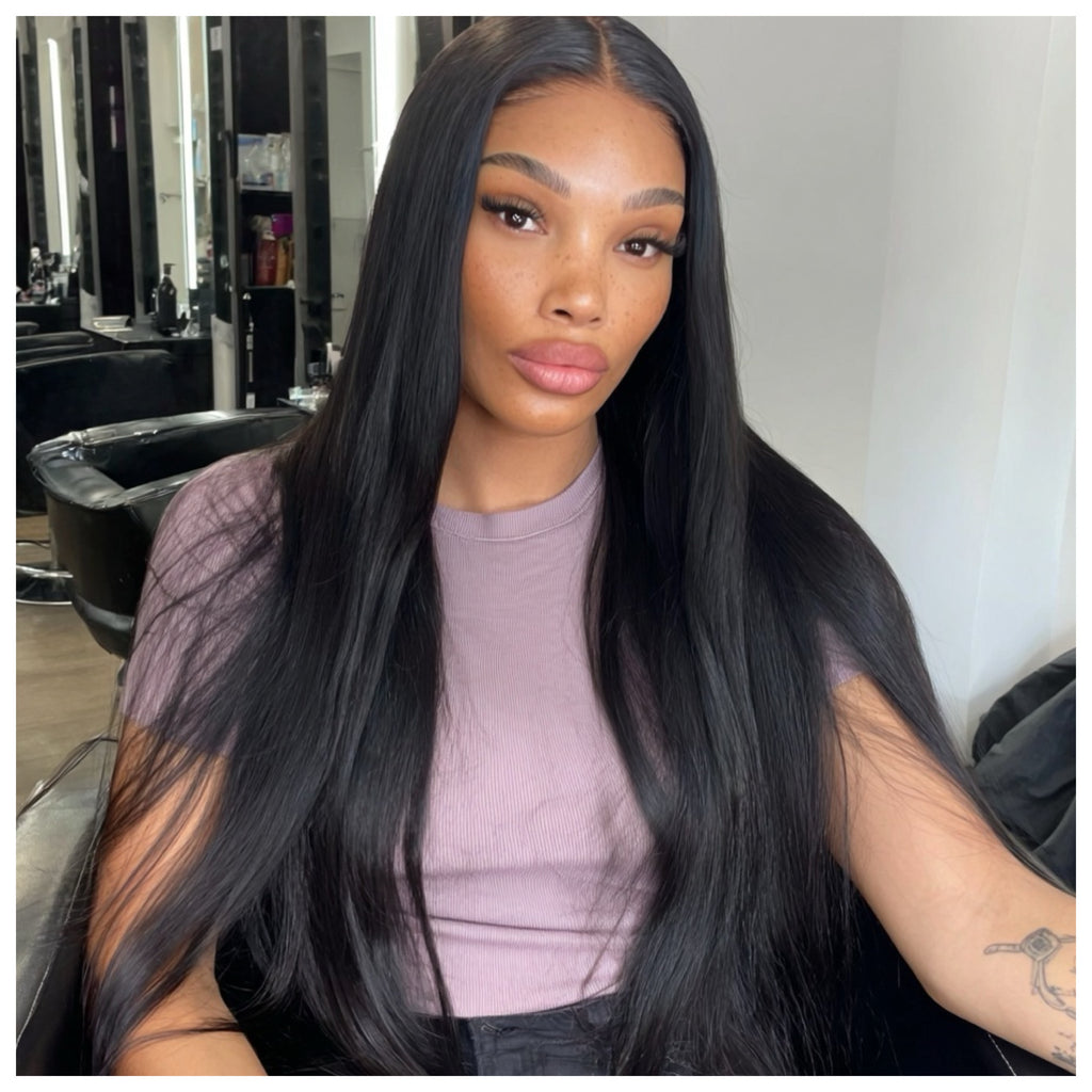 Human Hair Lace Front Wig 13x4 Straight Natural Black - Adrienne