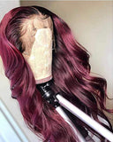 Human Hair Lace Front Wig 13x6 Body Wave Color #1b & Burgundy - Gia