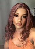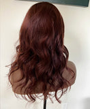 Long Human Hair Lace Front Wig 13x4 Auburn Reddish Brown Body Wave - Diamond