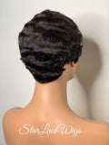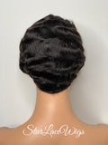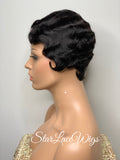 Short Curly Wig Human Hair Black Brown Side Part Wavy Finger Waves - Sylvia